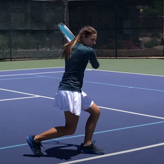 The second objective of this morning was loading the right leg in an open stance forehand. A few days earlier, I had done a Marisa Johnson at-home footwork routine (see button below for her video) where she clearly demonstrated how to prepare for shots by loading the legs. I compared this to other online instruction on the subject, and all of a sudden it became clear for the forehand open stance: by loading the leg, (see link below) and taking the racquet back in the unit turn, the hip becomes coiled. Balance is achieved by the toe on the opposite leg dragging on the ground. (This is why shoe manufacturers reinforce the toes on tennis shoes).
